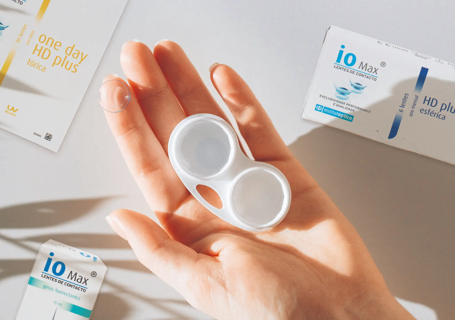 Descubra as lentes de contacto que melhor se adaptam à sua visão e explore as opções de hidratação e líquidos de manutenção ioMax, a nossa marca exclusiva.